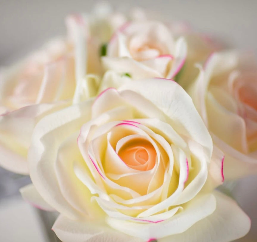 Each life-like perfumed Five Rose has been skilfully hand crafted and is set in gel giving it the appearance of water. Each petal has a special natural coating to give them a true to life touch and appearance and arranged in a clear vase with a silver signature Cote Noire badge.