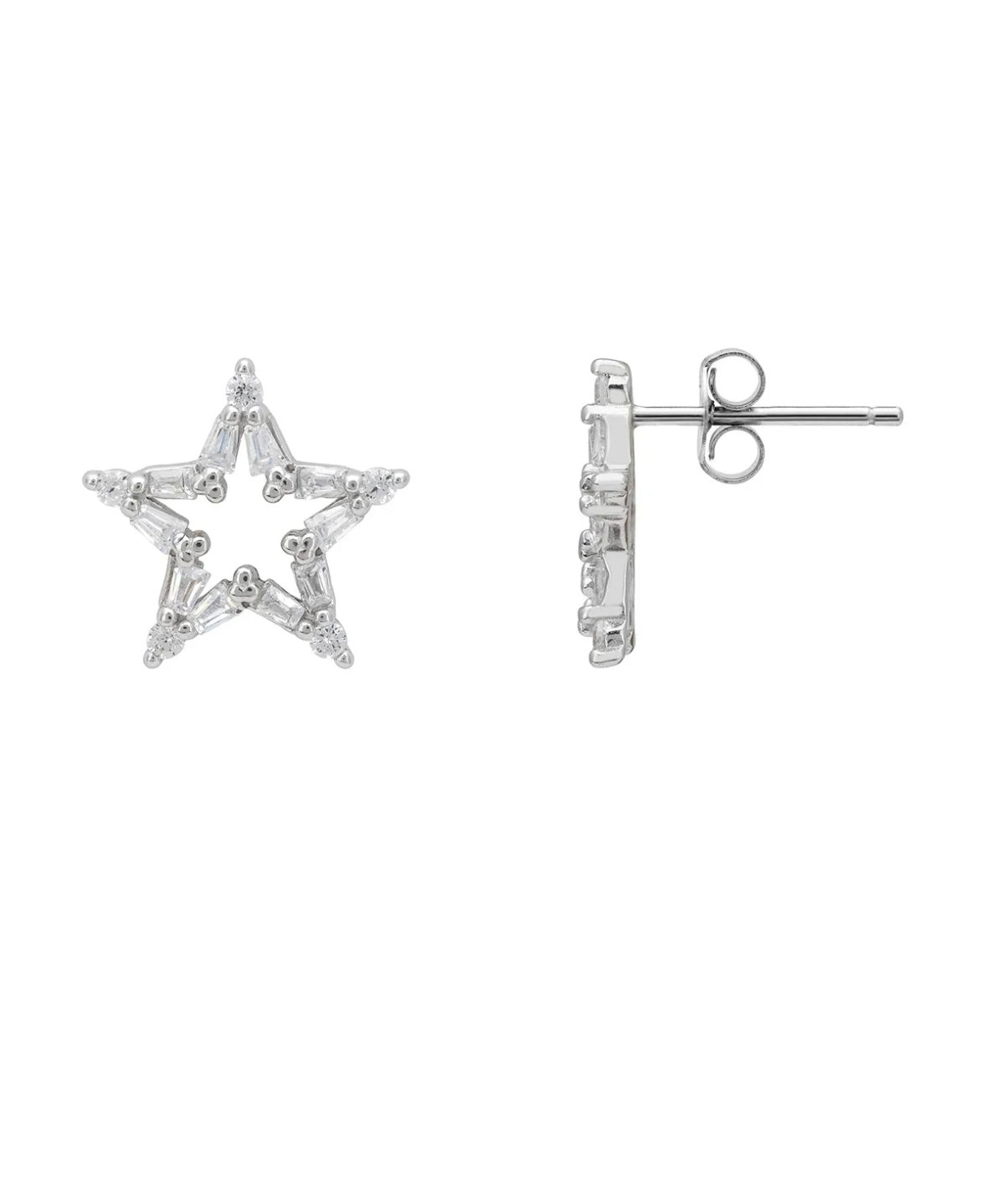 Outshine the brightest stars in the universe with our Super Nova Star Stud Earrings. Crafted from 925 sterling silver, these open five-point stars are adorned with baguette-cut cubic zirconia, catching the light like constellations in the celestial night sky.